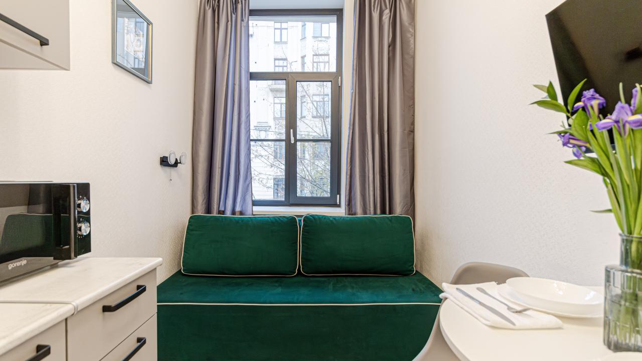 Могу твердо рекомендовать эти апартаменты для проживания. Совершенно никаких недостатков или неудобств. Шикарная квартира, новый евроремонт, качественная мебель и порядок в любом месте. На кухне хорошая техника. До основных достопримечательностей можно дойти пешком, по пути много магазинов и кафе.