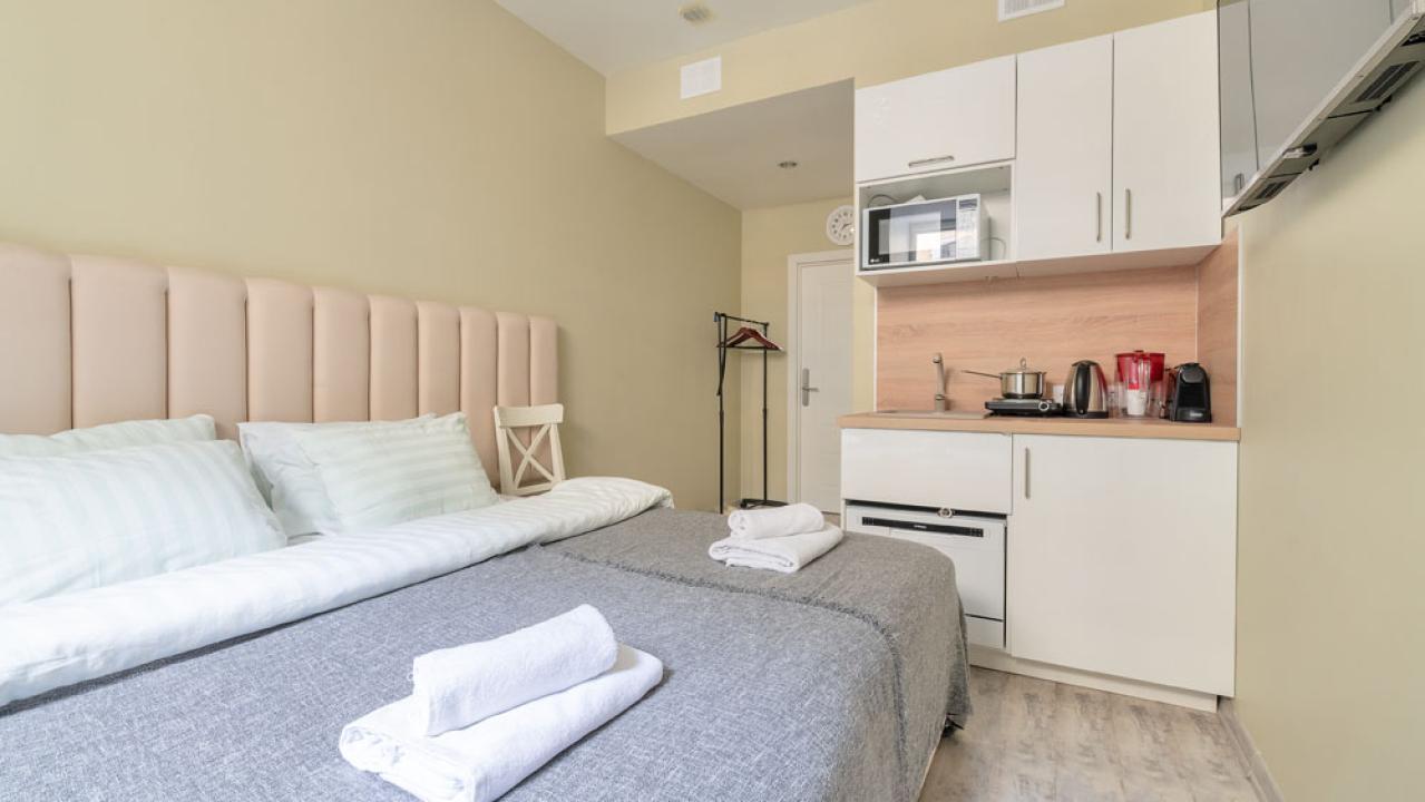 Могу твердо рекомендовать эти апартаменты для проживания. Совершенно никаких недостатков или неудобств. Шикарная квартира, новый евроремонт, качественная мебель и порядок в любом месте. На кухне хорошая техника. До основных достопримечательностей можно дойти пешком, по пути много магазинов и кафе.