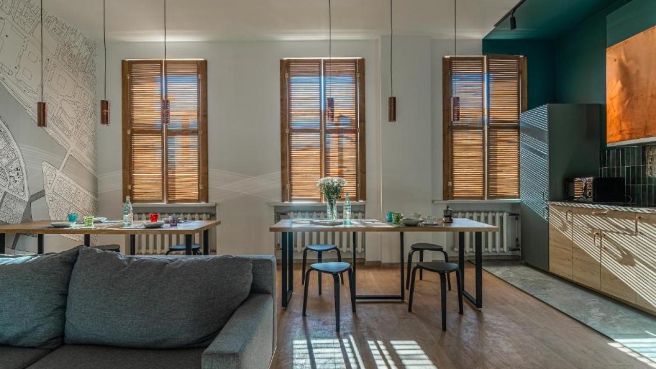 Могу твердо рекомендовать эти апартаменты для проживания. Совершенно никаких недостатков или неудобств. Шикарная квартира, новый евроремонт, качественная мебель и порядок в любом месте. На кухне хорошая техника. До основных достопримечательностей можно дойти пешком, по пути много магазинов и кафе.