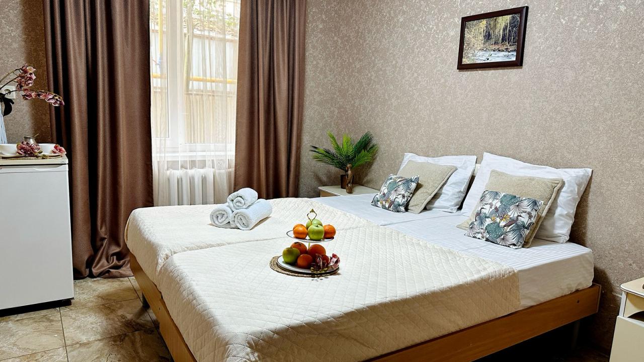 Хороший гостевой дом. Встретил дружелюбный персонал, который с легкостью отвечал на интересующие меня вопросы. Номер был ухоженный и чистый, вся техника исправно работала. Неплохая общая кухня со всей необходимой бытовой техникой. Очень порадовало местоположение, в шаговой доступности множество заведений с вкусным меню, До моря идти пару минут прогулочными шагами. В соотношении ценакачество отличное место. Обязательно приеду еще!