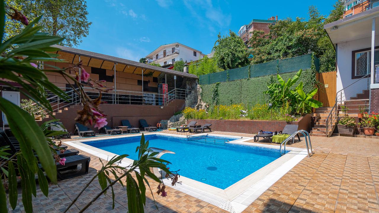Территория отеля уютная,администратор Татьяна все показала, объяснила,провела по территории. Номер большой,в номере есть телевизор, кондиционер, холодильник, сейф. В отеле есть смотровая площадка,где можно наблюдать закат и позагорать. Бассейн теплый,чистый, довольно глубокий.