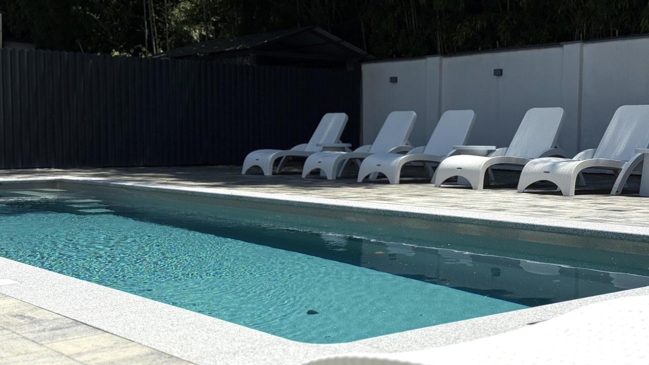 Территория отеля уютная,администратор Татьяна все показала, объяснила,провела по территории. Номер большой,в номере есть телевизор, кондиционер, холодильник, сейф. В отеле есть смотровая площадка,где можно наблюдать закат и позагорать. Бассейн теплый,чистый, довольно глубокий.