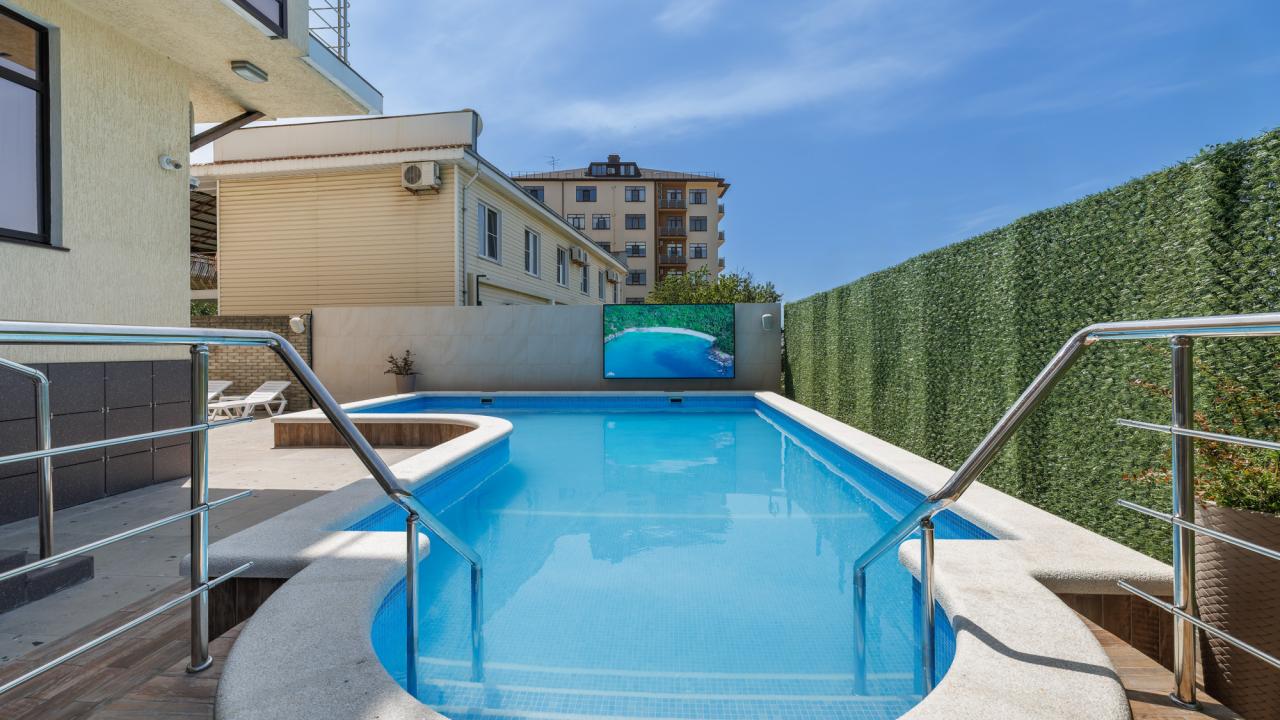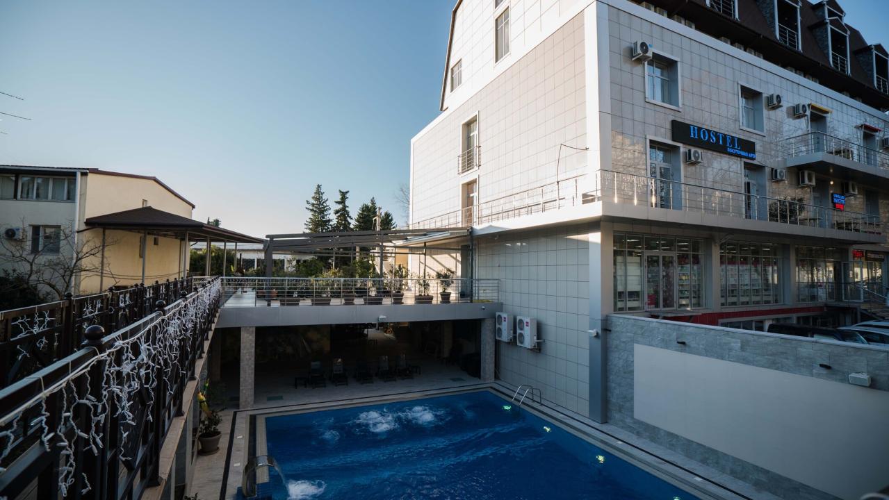Территория отеля уютная,администратор Татьяна все показала, объяснила,провела по территории. Номер большой,в номере есть телевизор, кондиционер, холодильник, сейф. В отеле есть смотровая площадка,где можно наблюдать закат и позагорать. Бассейн теплый,чистый, довольно глубокий.