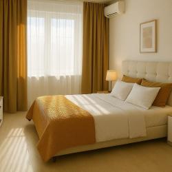 Квартира достаточно просторная. Наконец-то нашли апартаменты, которые размером не метр на метр, как кладовка. Здесь же все было прекрасно. Уютно, светло. Было чисто, видно, что перед нашим заездом провели качественную уборку. Пахнет в квартире приятно. Кухня подготовлена к самостоятельному приготовлению еду. В ванной комнате все было отлично, хорошая сантехника, чисто.